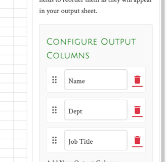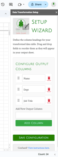 A sidebar will open with some default column titles which you can use, modify, delete and add to. When ready click 'Save configuration'