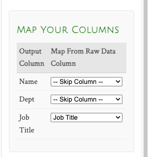 The 'Setup your desired table' menu allows you to define the column titles that you wish to include in your table.