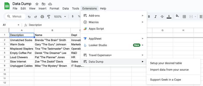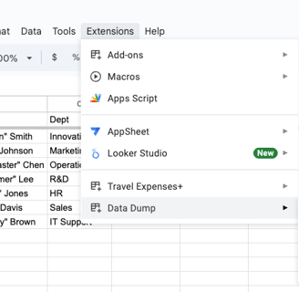 Install Data Dump from the Google Workspace Marketplace - Link Here (link active soon). Just hit the install button and follow the simple steps.